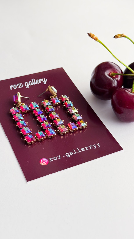 گوشواره جواهری سرخابی هفت رنگ با دیزاین مستطیلی خاص گوشواره سرخابی