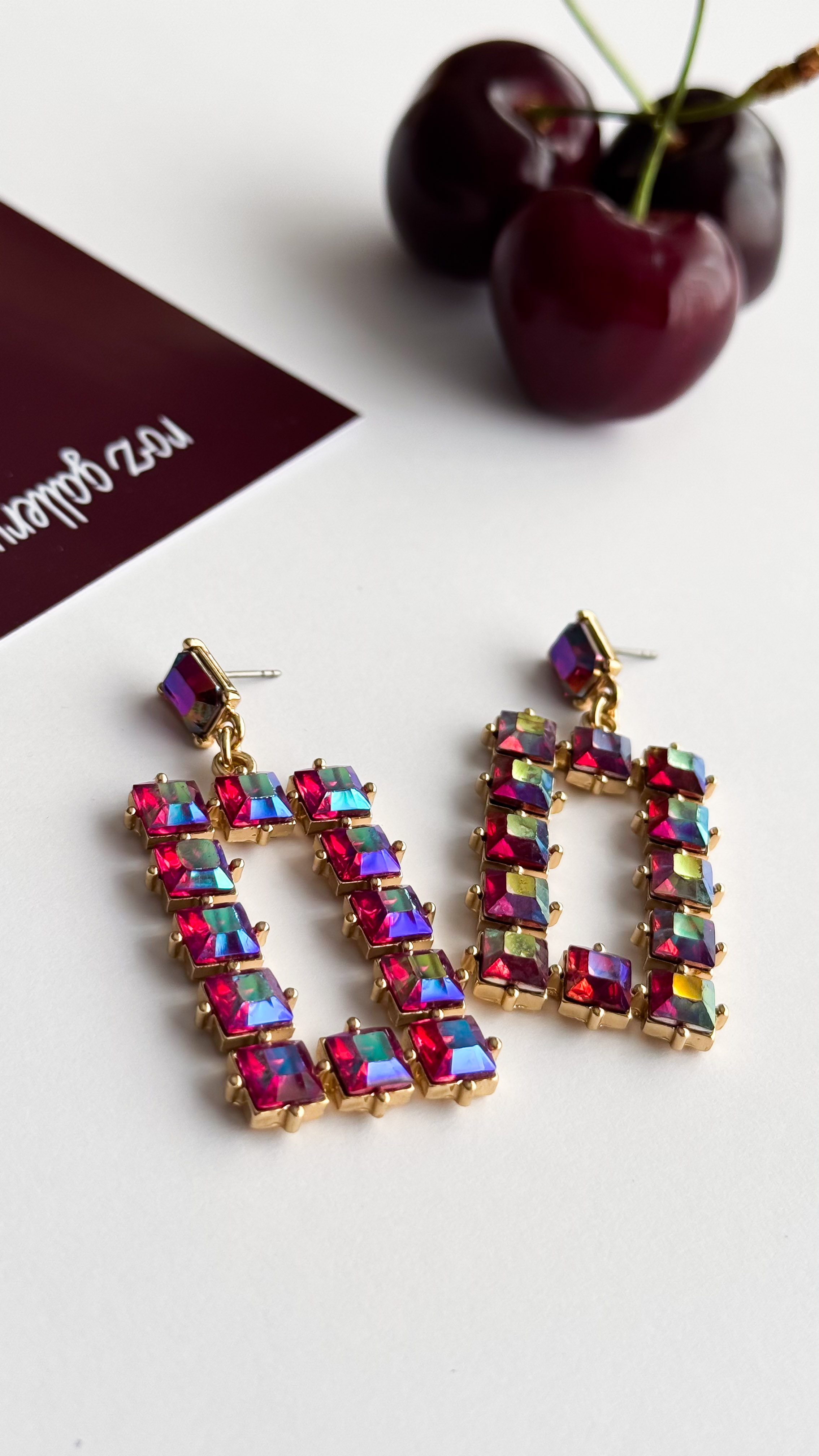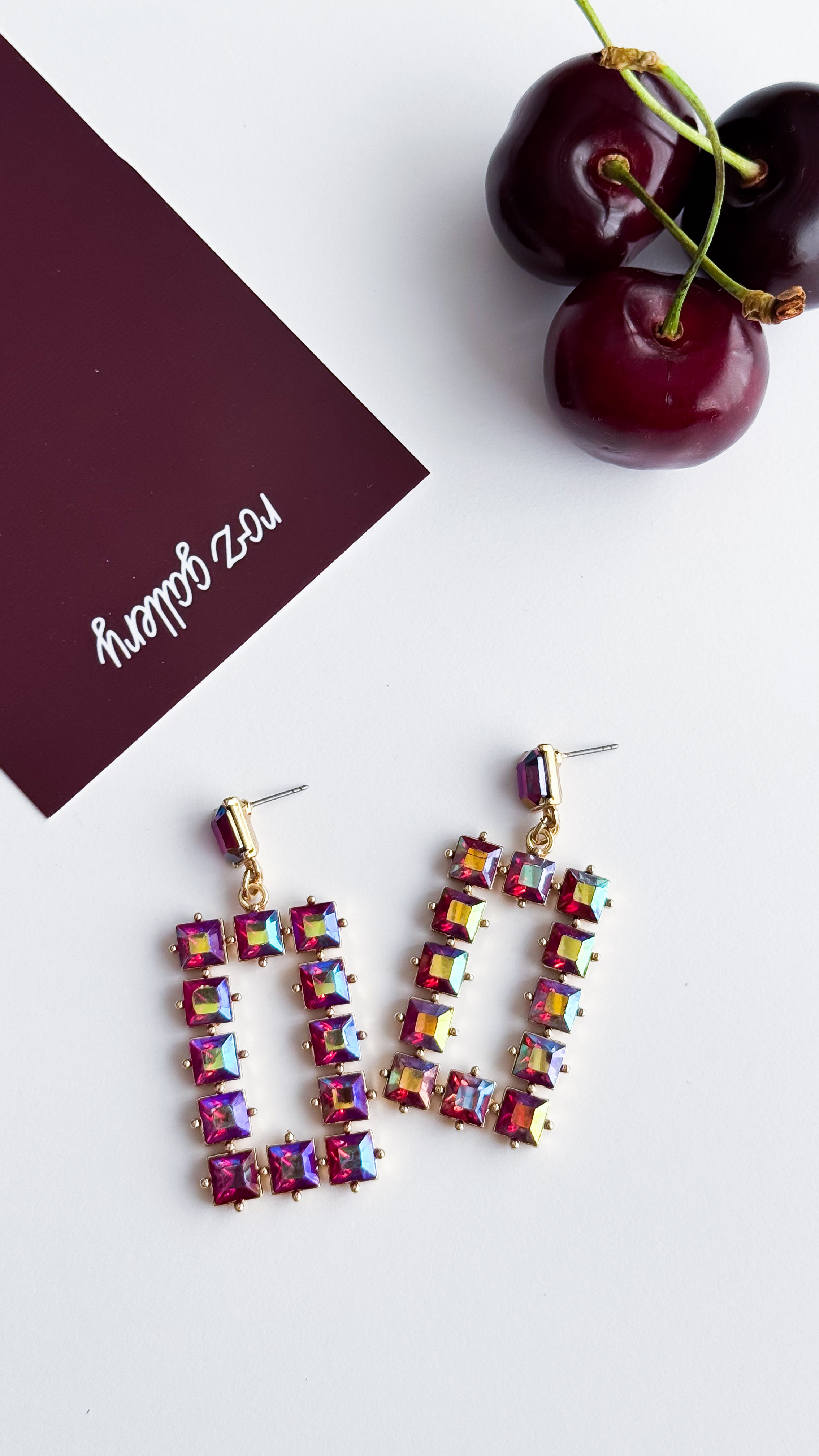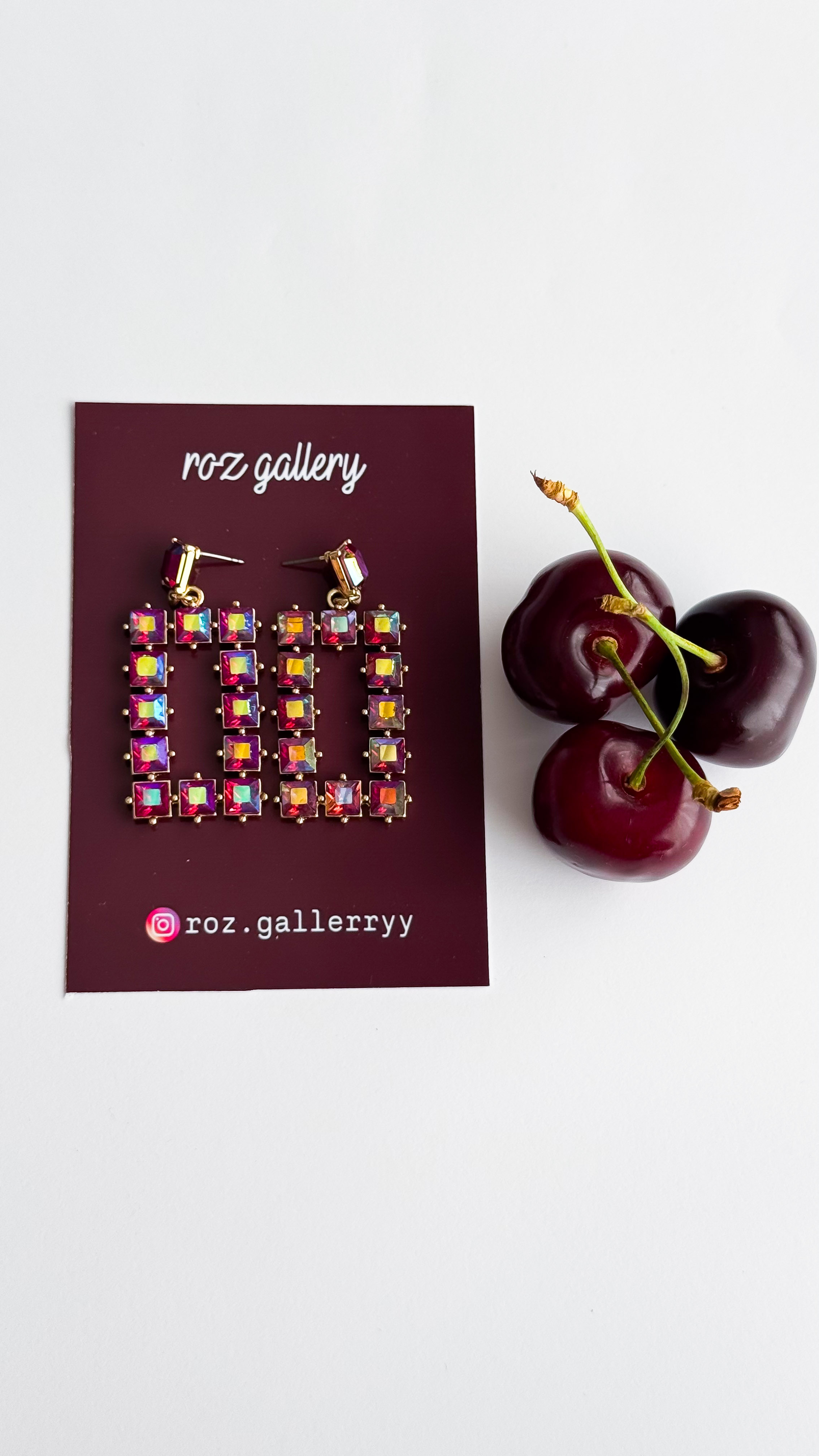 گوشواره جواهری سرخابی هفت رنگ با دیزاین مستطیلی خاص گوشواره سرخابی