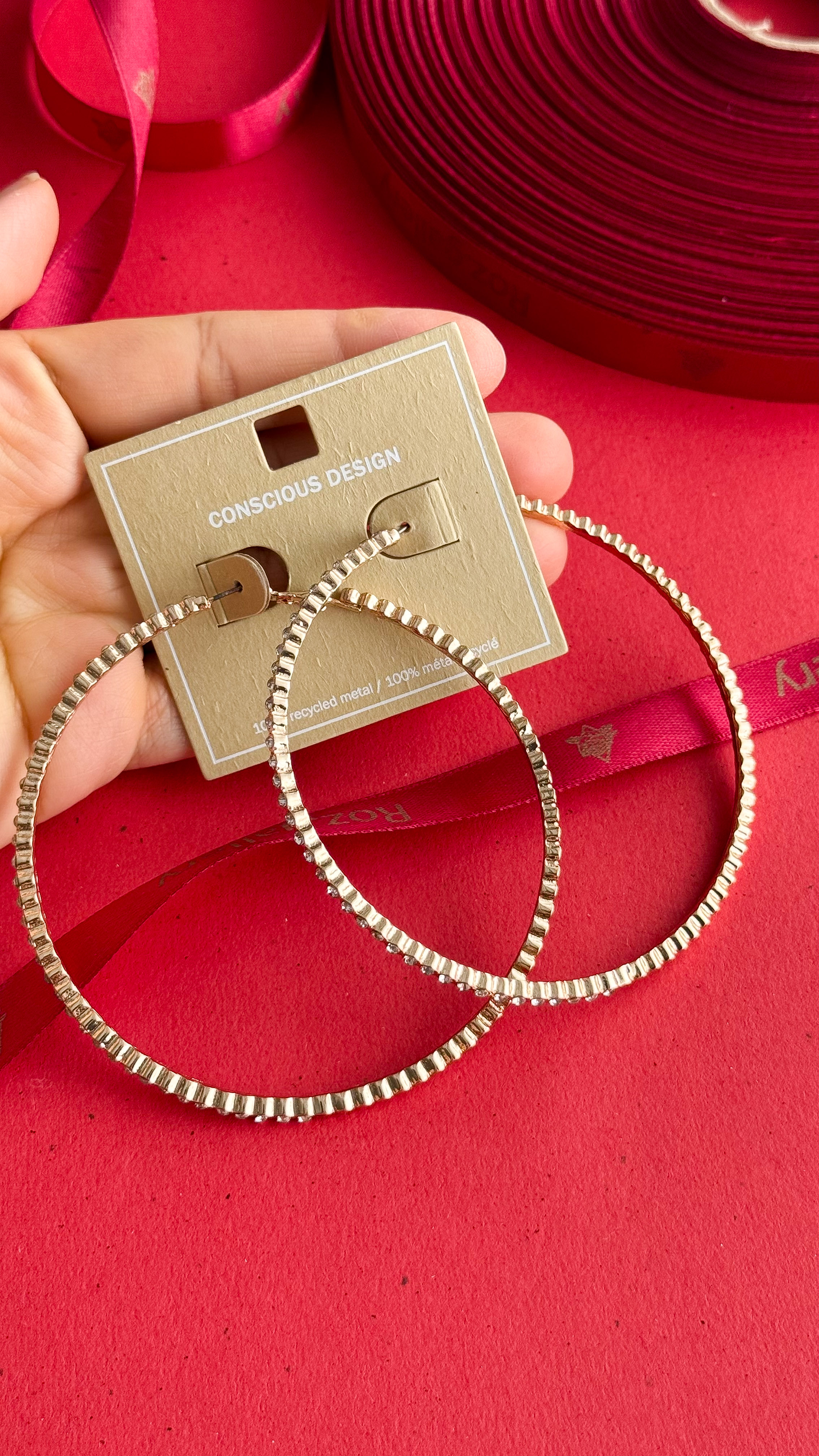 گوشواره حلقه درشت نگینی فوق العاده خاص و زیبا گوشواره حلقه ای طلایی