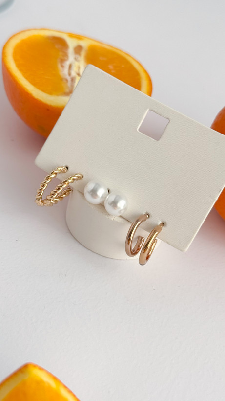 پک سه عددی گوشواره حلقه ای و گوشواره مروارید