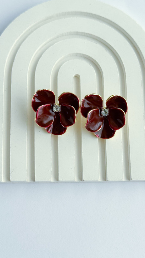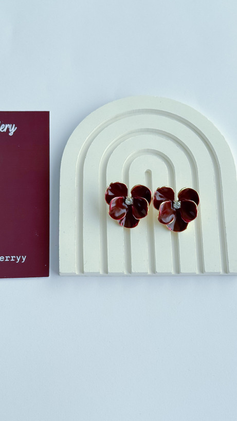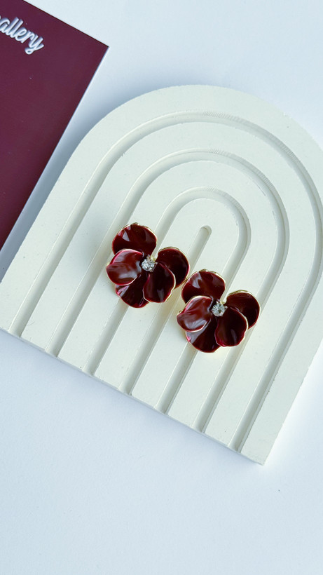 گوشواره زرشکی میناکاری گل ارکیده گوشواره گل گوشواره میناکاری