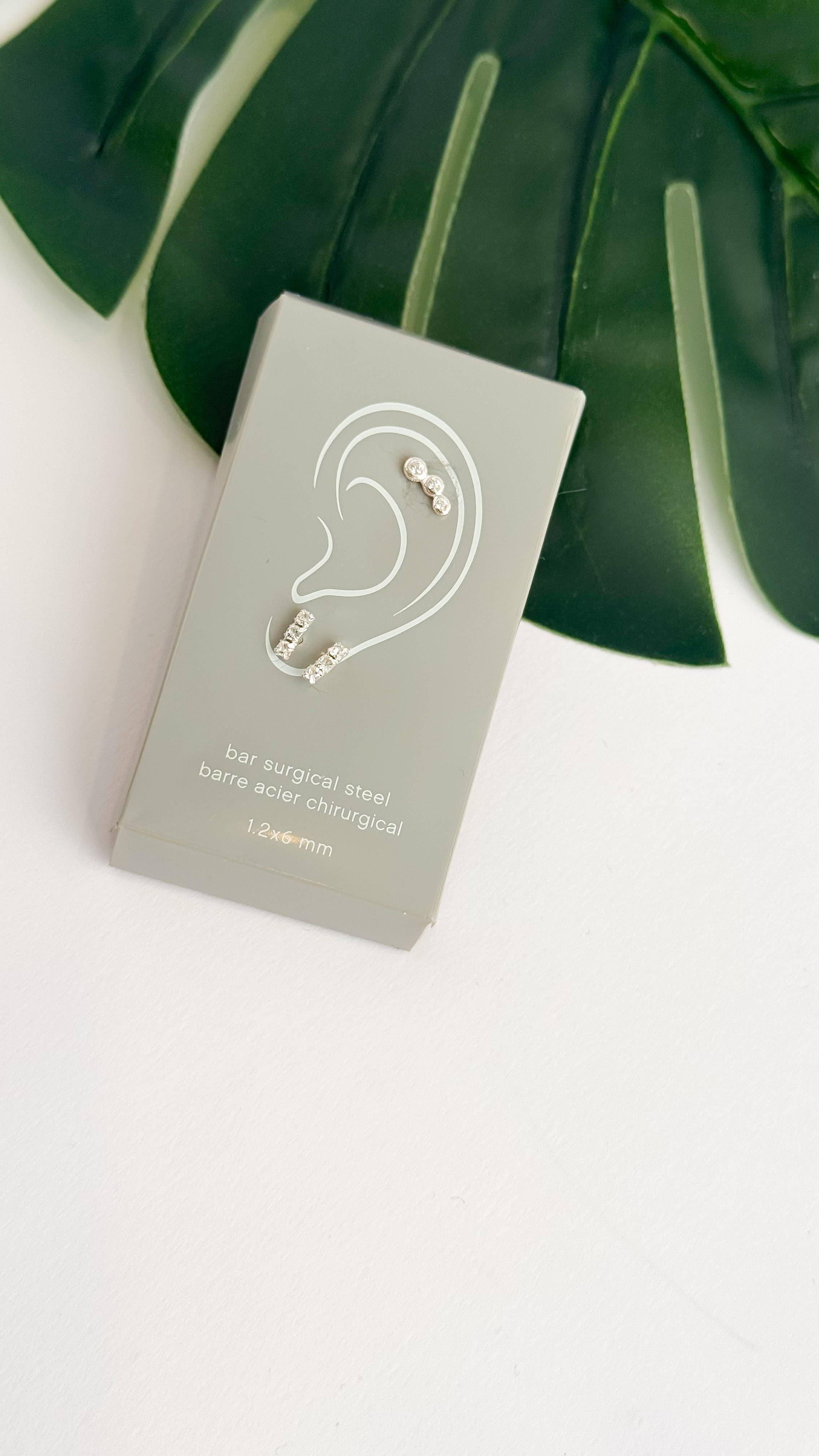 پکگوشواره نقره 925 سه نگین همراه با پرسینگ نقره