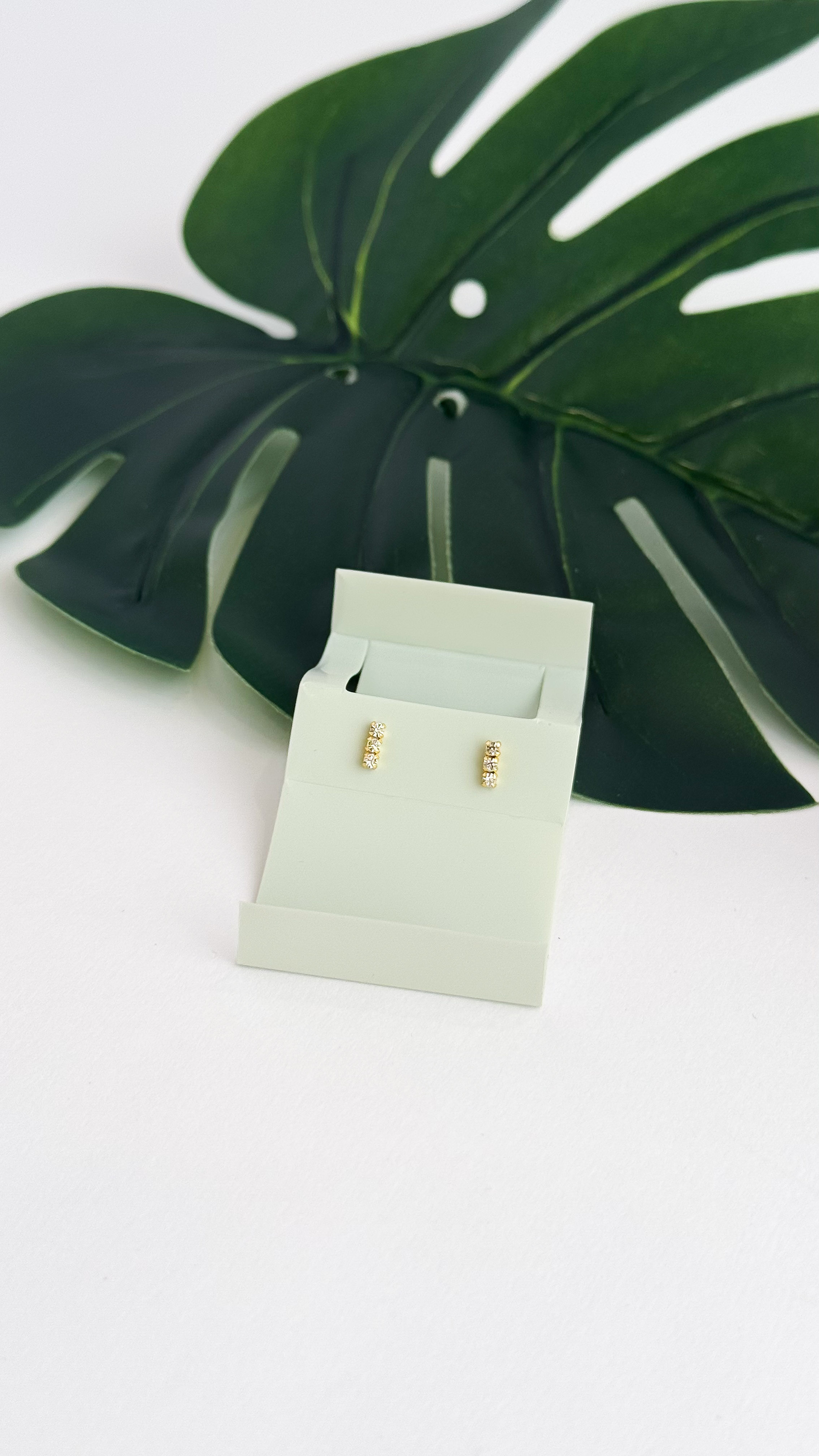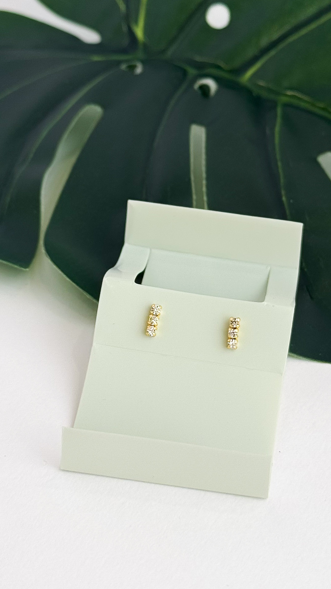 گوشواره نقره 925 مینیمال سه سنگین پایه طلایی