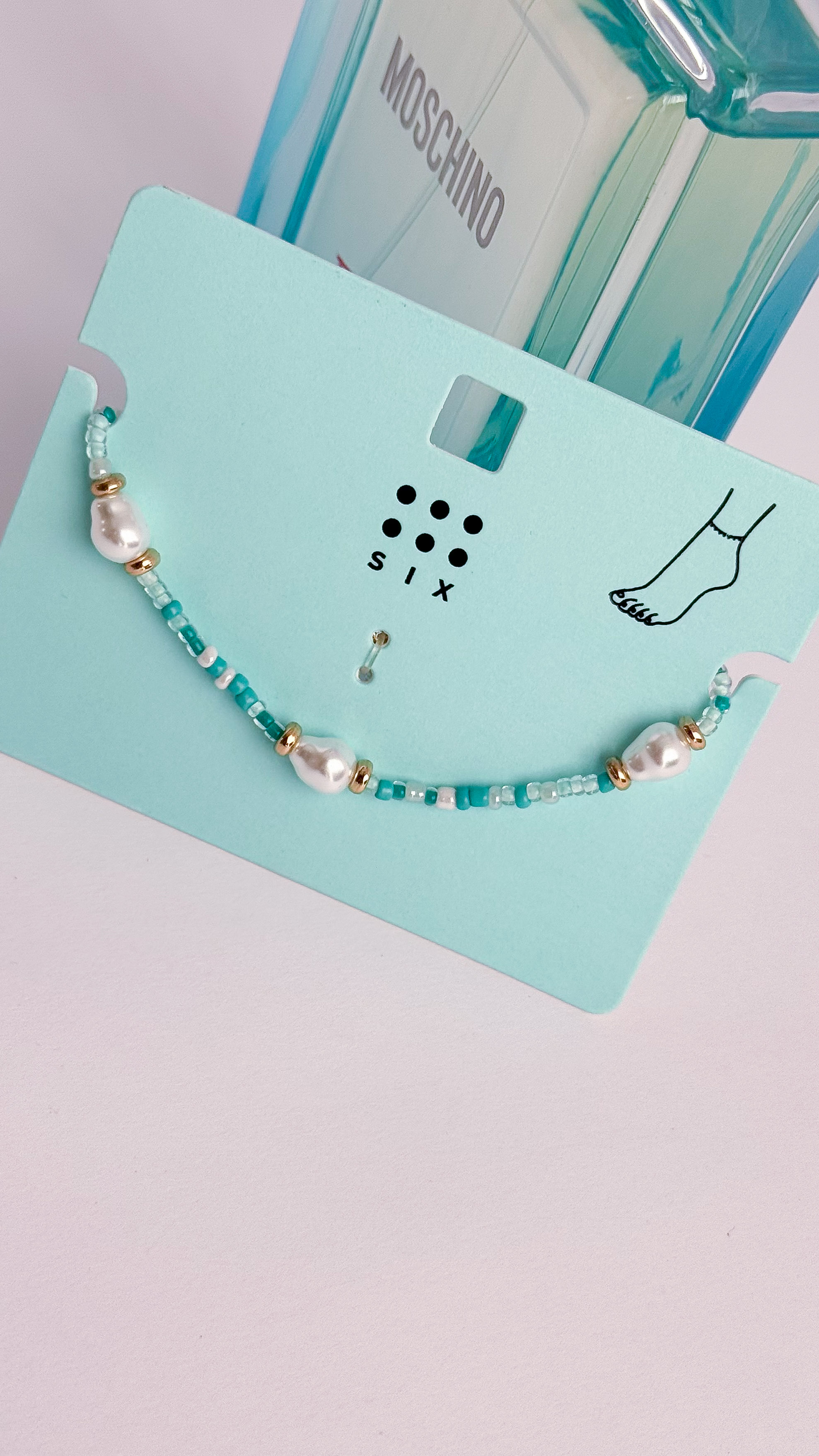پابند مروارید و منجوق دریایی پابند ابی ملیح و خوشرنگ پابند دخترانه