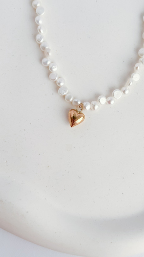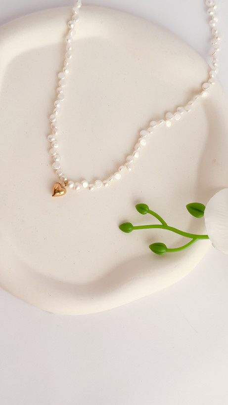 گردنبند مروارید پرورشی با پلاک قلب طلا ۱۸ عیار گردنبند طلا گردنبند دخترانه گردنبند قلب