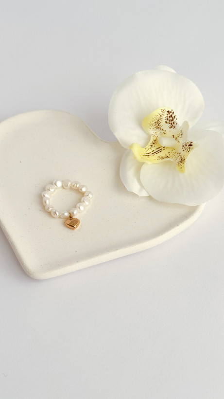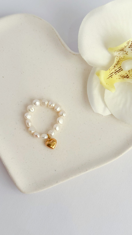 انگشتر مروارید پرورشی با پلاک قلب طلا ۱۸ عیار انگشتر طلا انگشتر قلب انگشتر زنانه
