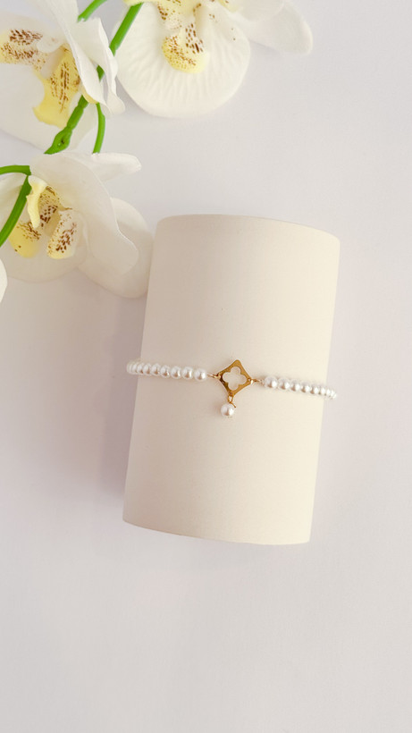 دستبند ونکلیف طلا ۱۸ عیار با مروارید shell دستبند مروارید دستبند طلا دستبند دخترانه