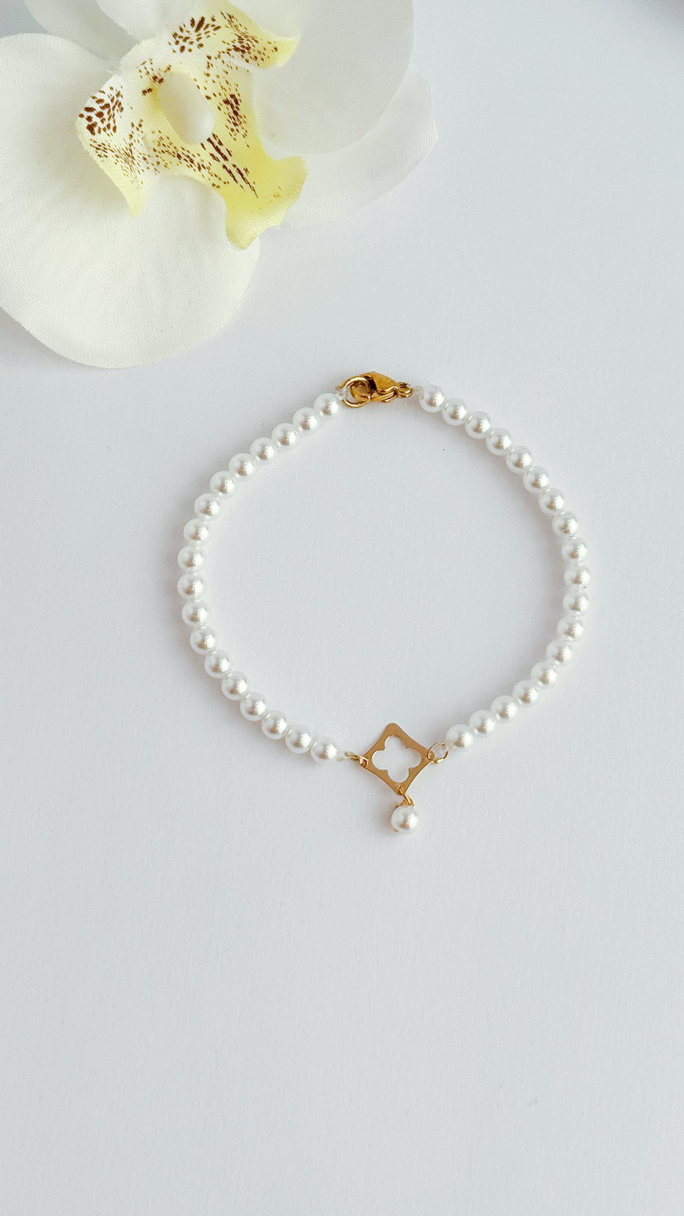 دستبند ونکلیف طلا ۱۸ عیار با مروارید shell دستبند مروارید دستبند طلا دستبند دخترانه