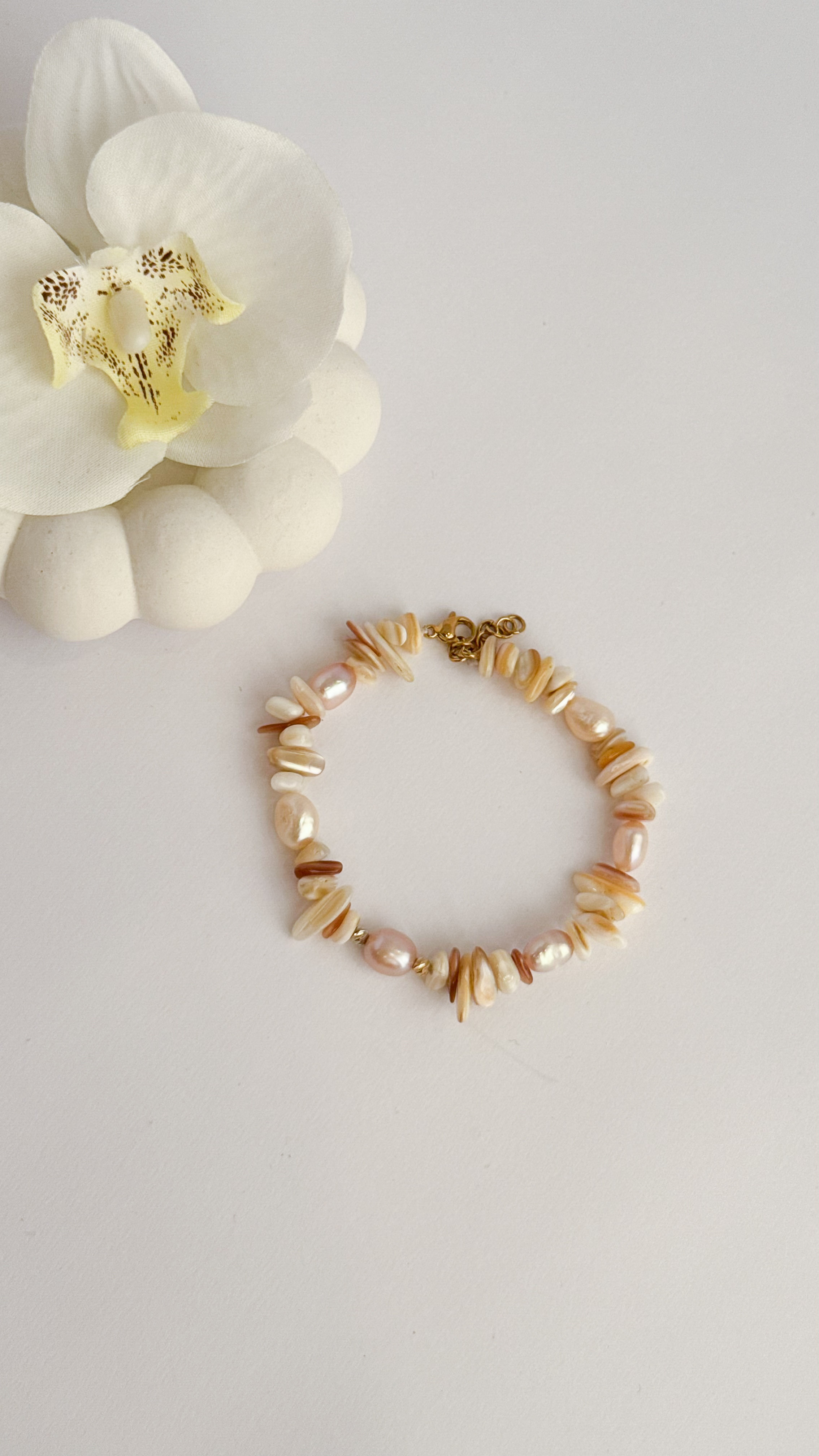 دستبند مروارید اصل پرورشی و سنگ صدف طبیعی و البرنادو طلا ۱۸ عیار دستبند طلا دستبند دخترانه