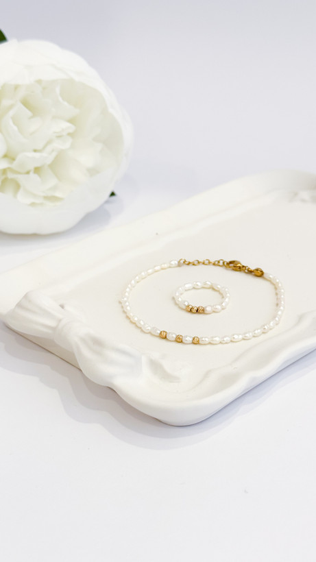 ست دستبند و انگشتر ظریف مروارید پرورشی و گوی طلای البرنادو طلا کادویی