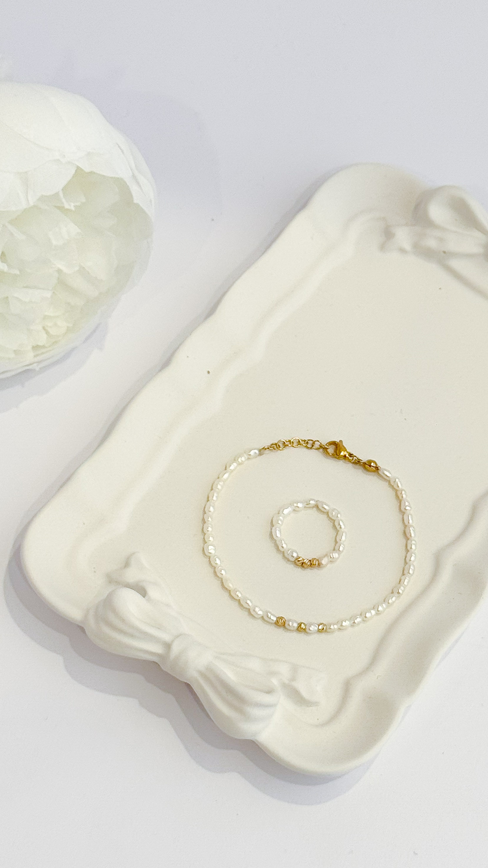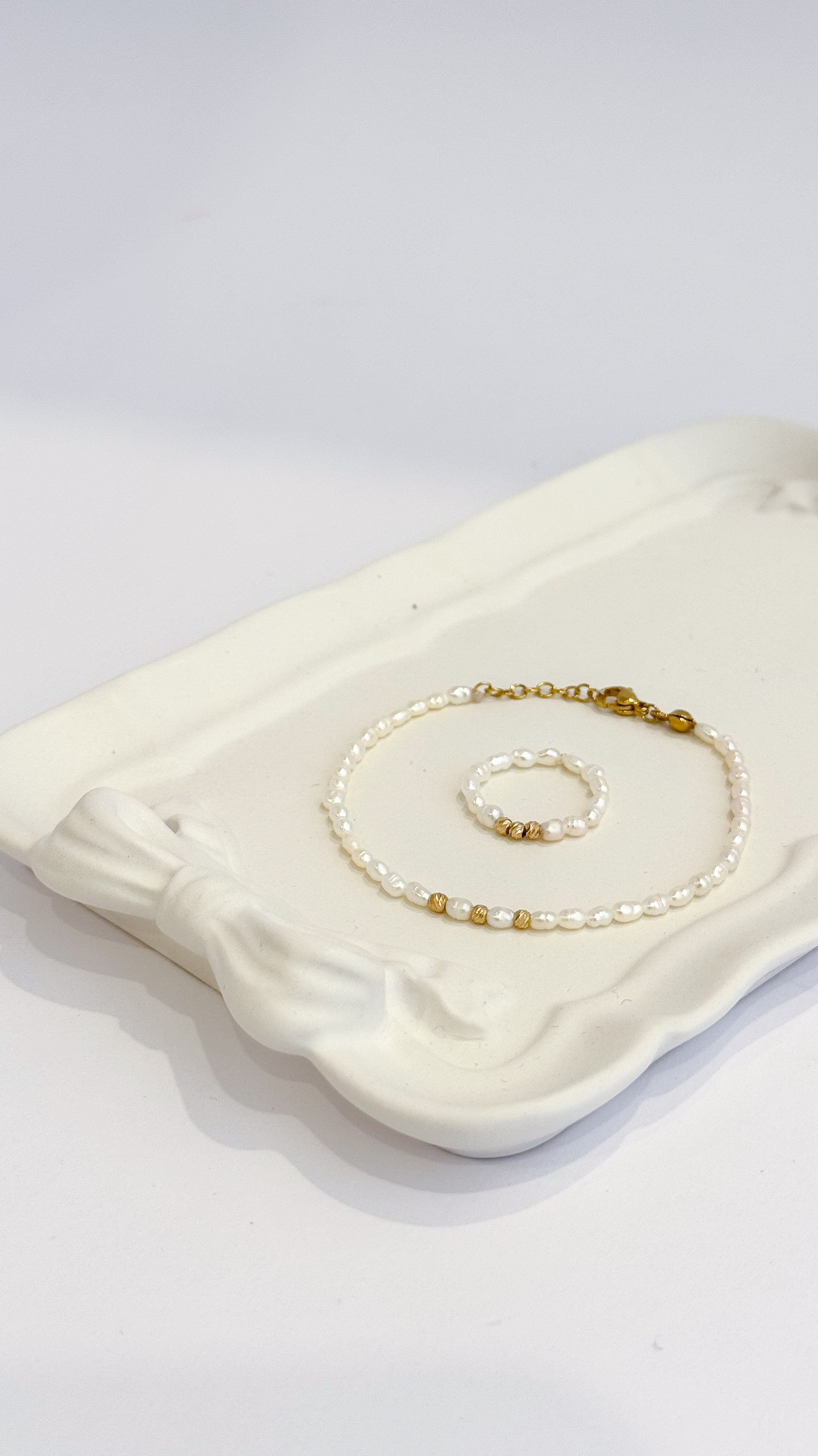 ست دستبند و انگشتر ظریف مروارید پرورشی و گوی طلای البرنادو طلا کادویی