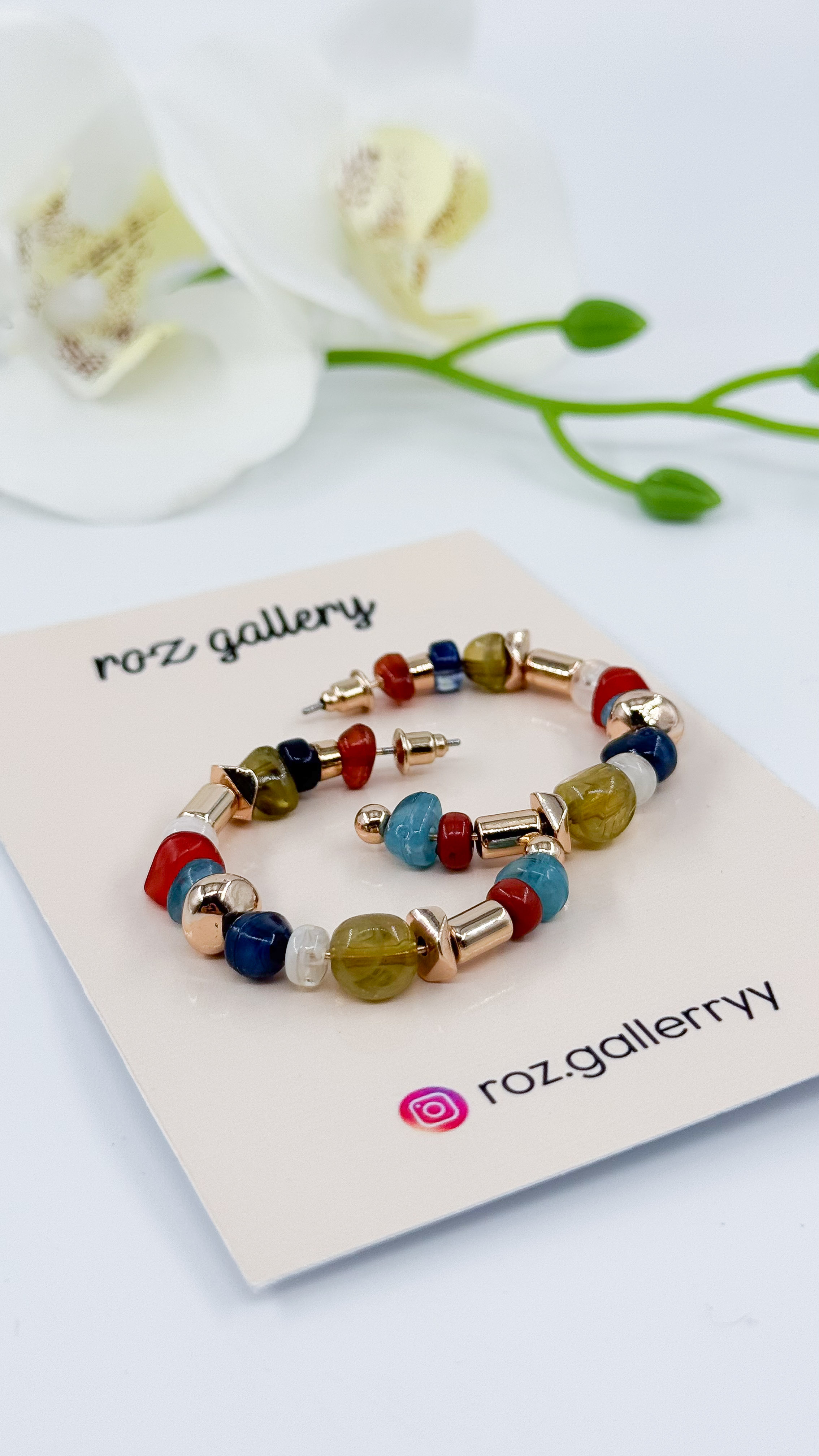 گوشواره حلقه ای طرح سنگ رنگی گوشواره رنگی دخترانه