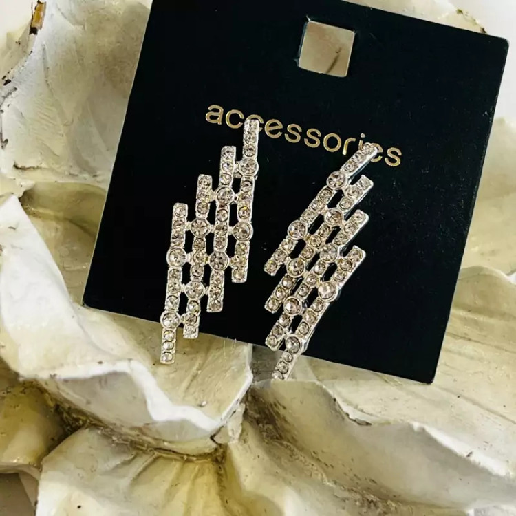 گوشواره نگین نقره ای مجلسی کار جذاب و براق