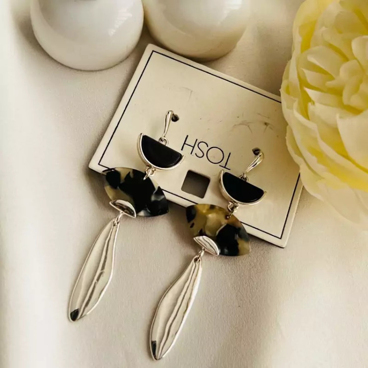گوشواره رزین مشکی اویزی برند لوکس tosh