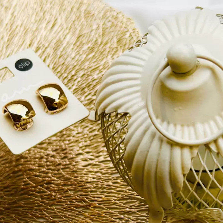 گوشواره کلیپسی نیم دایره برجسته طلایی براق