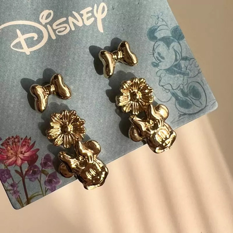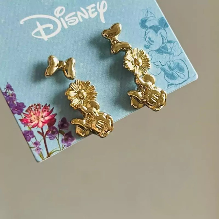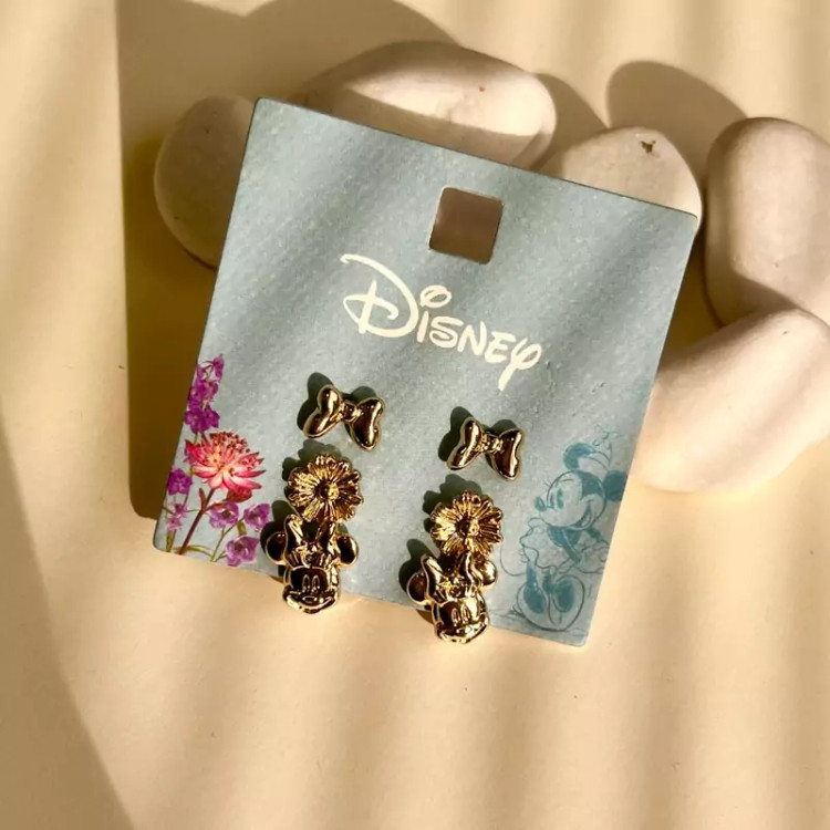 پک سه عددی گوشواره پیزنی طرح میکی گل پاپیون مشابه طلا
