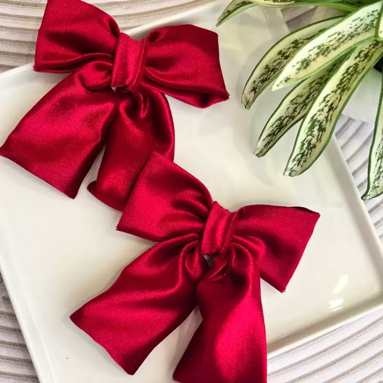 پک دو عددی پاپیون دخترانه مخمل مینی ترند و جذاب رنگ قرمز سرخ