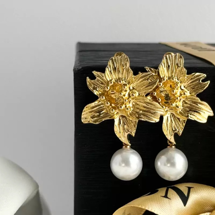 گوشواره گل مرواریدی طرح زارا فوق العاده خاص و لاکچری گوشواره مروارید گوشواره طلایی گوشواره زارا گوشواره مرواریدی
