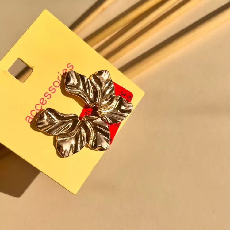 گوشواره سه گلبرگ چکشی طلایی براق و شیک