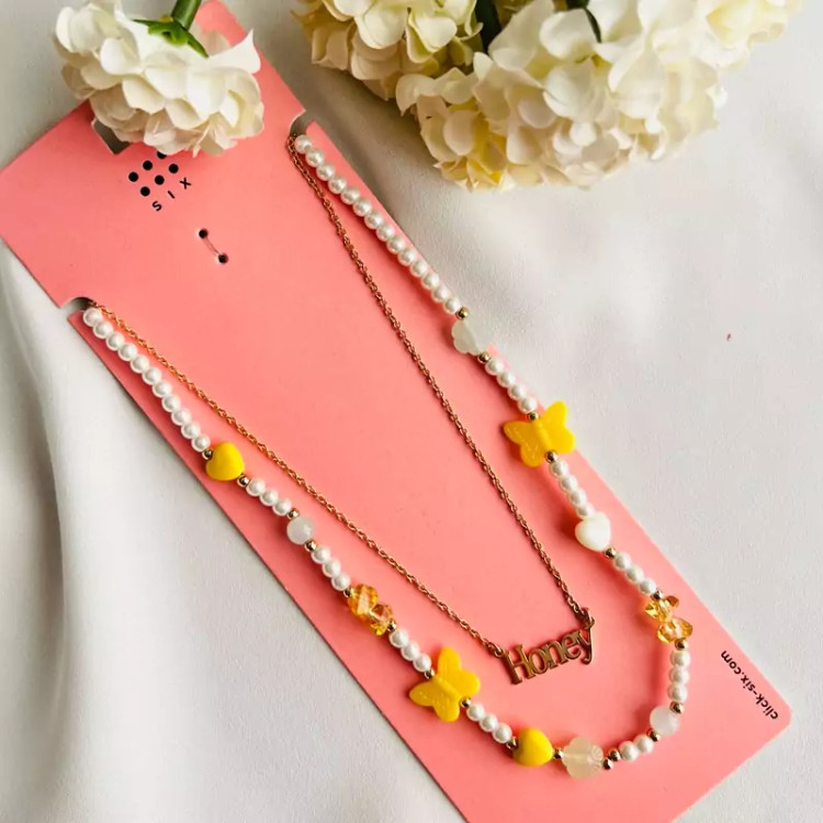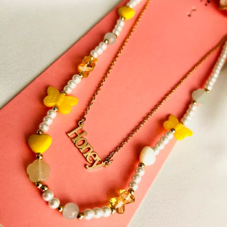 پک دو عددی گردنبند مروارید پروانه ای و گردنبند طلایی honey