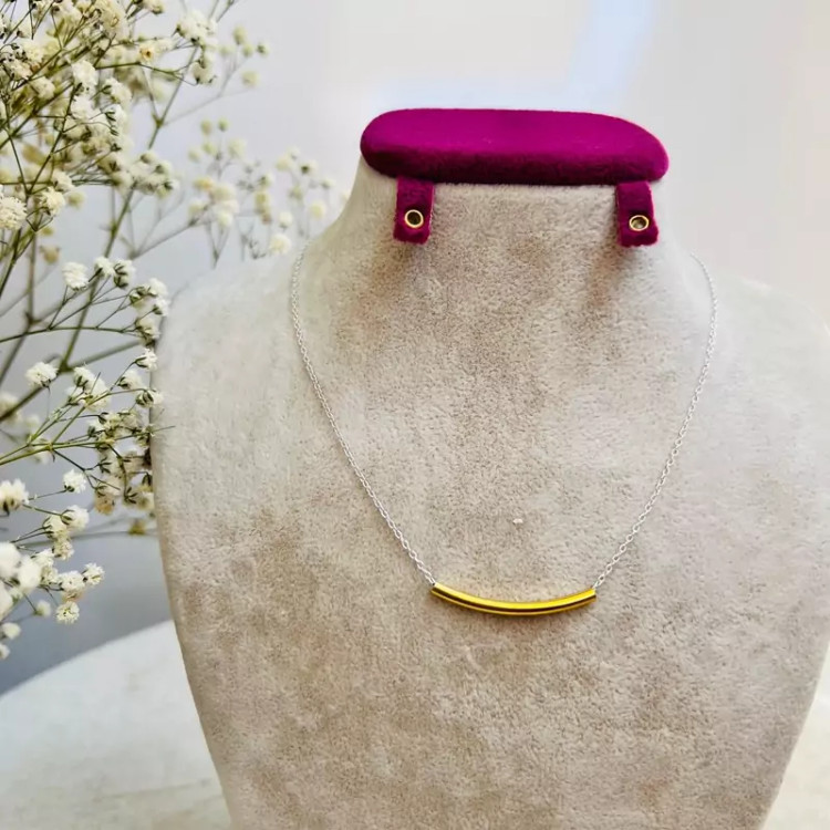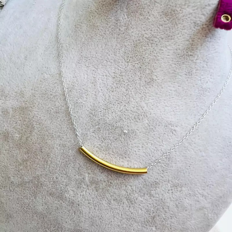 گردنبند میله طلایی زنجیر نقره عیار 925