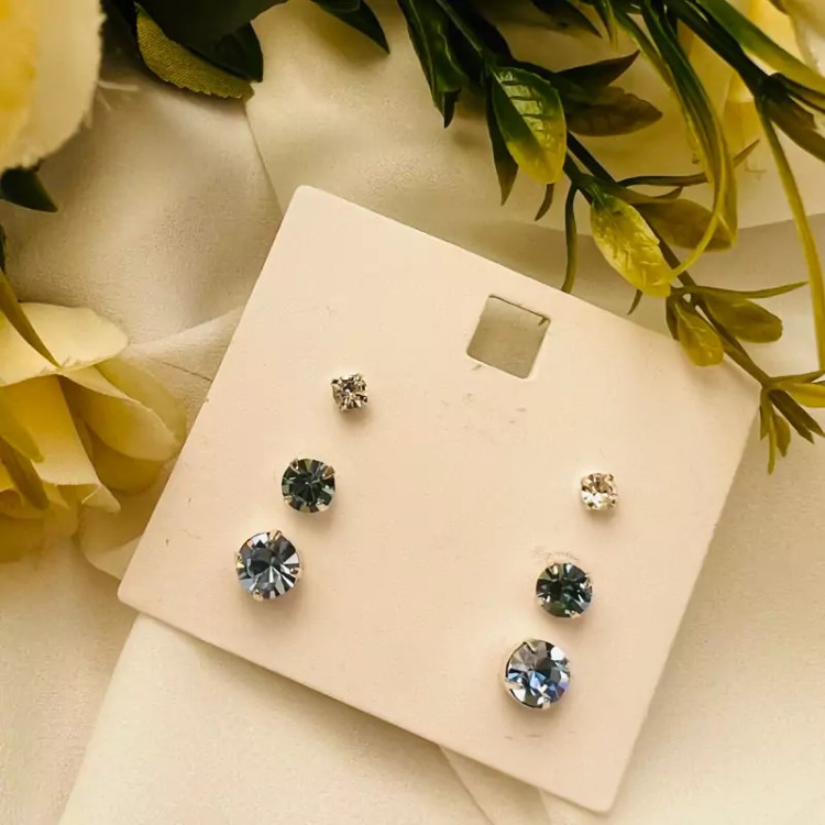 پک سه عددی گوشواره نگین ابی و سبز ابی و نقره ای