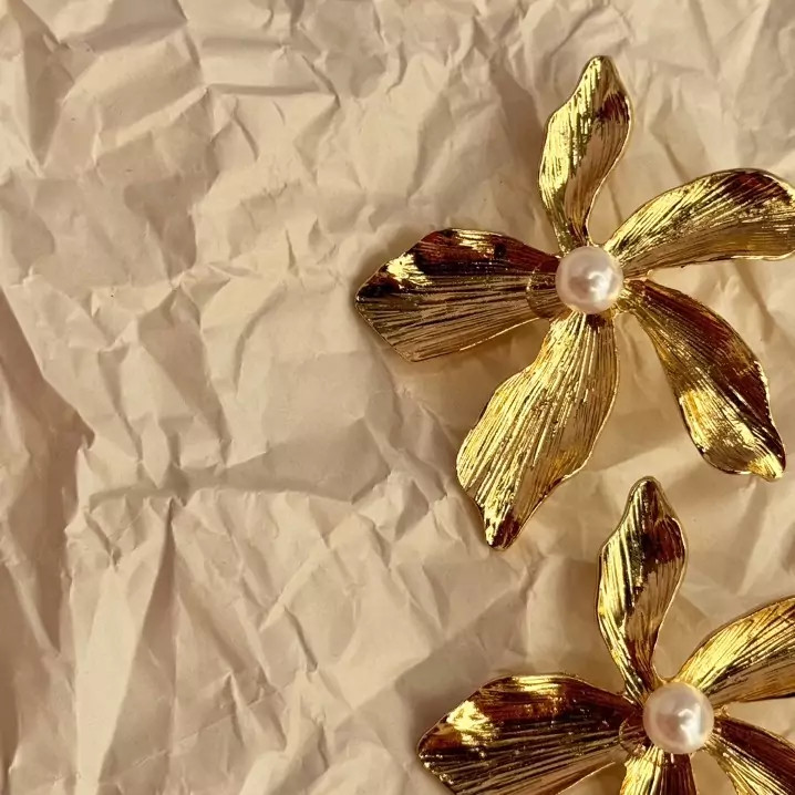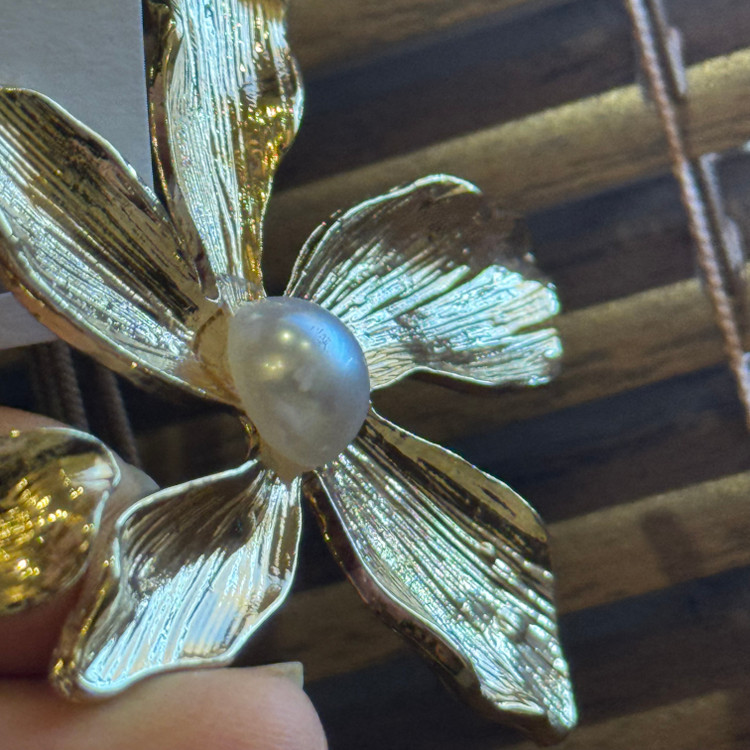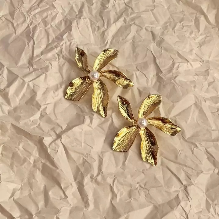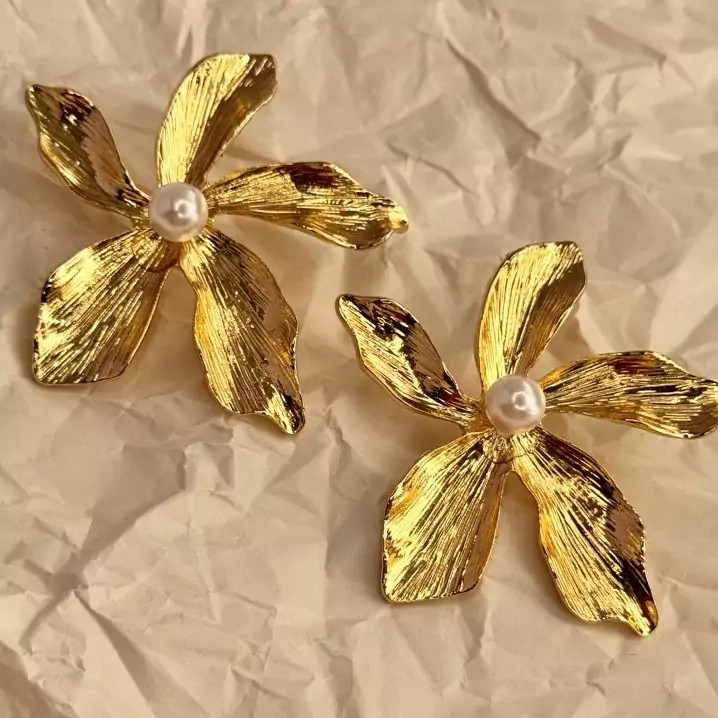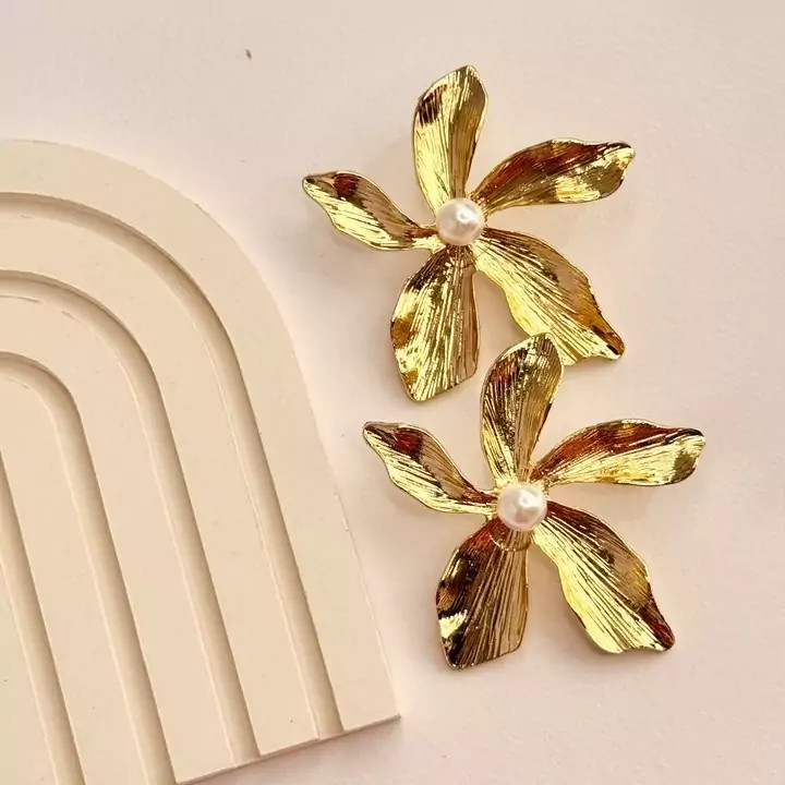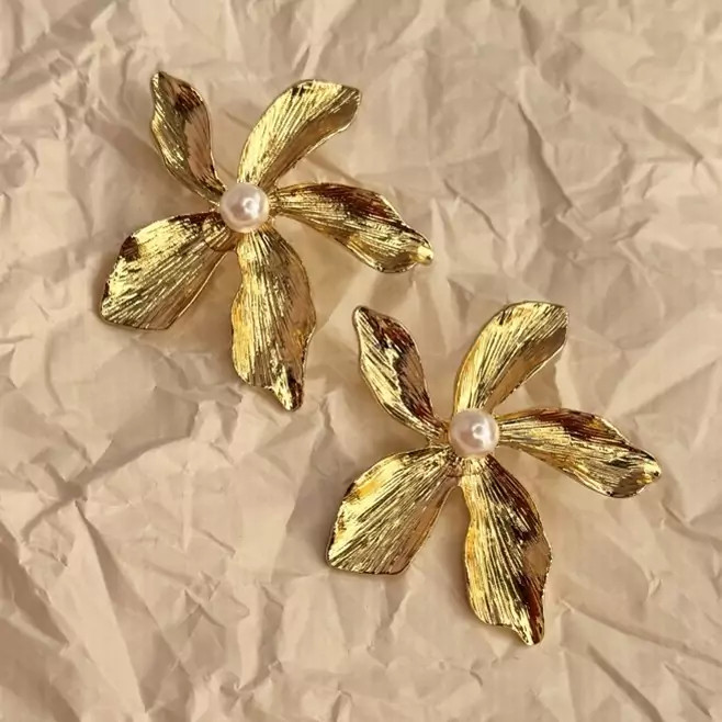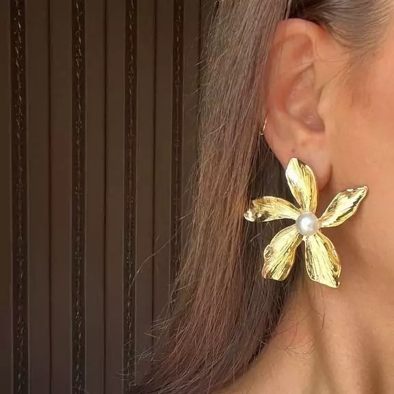 گوشواره زارا گل طلایی مرواریدی گوشواره گل گوشواره طلایی گوشواره مرواریدی درشت و با جلوه