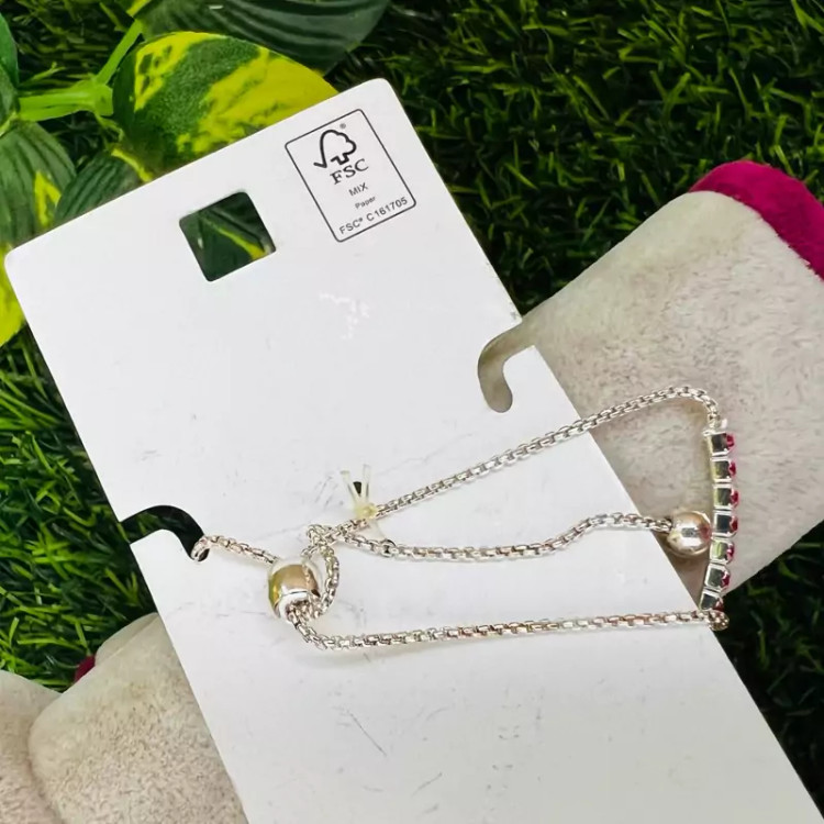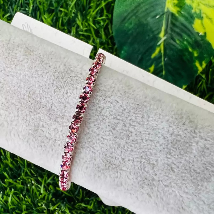 دستبند وارداتی نگین صورتی با قفل اسانسوری دستبند صورتی دستبند تنیسی