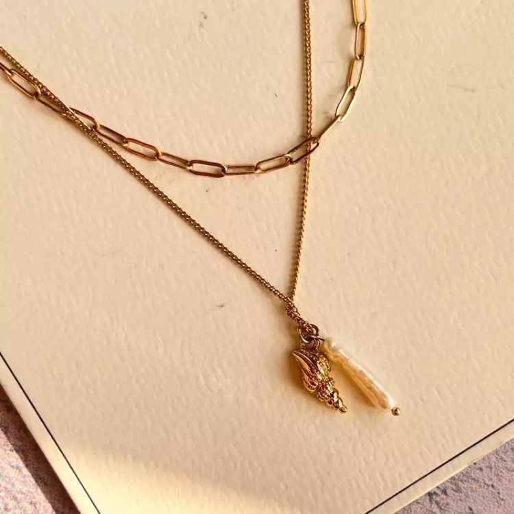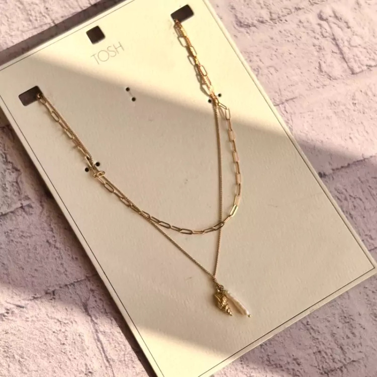 پک دو عددی گردنبند شنل و اویز مروارید طبیعی وصدف برند لوکس tosh