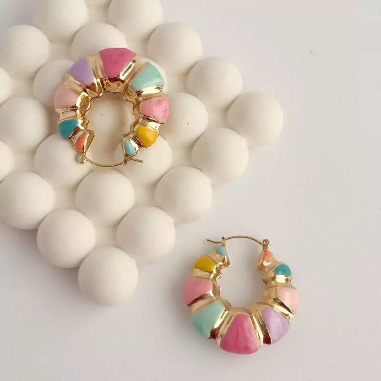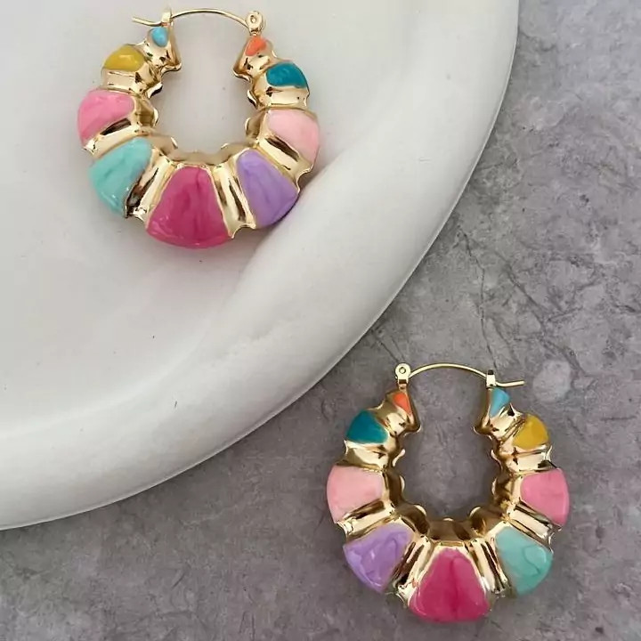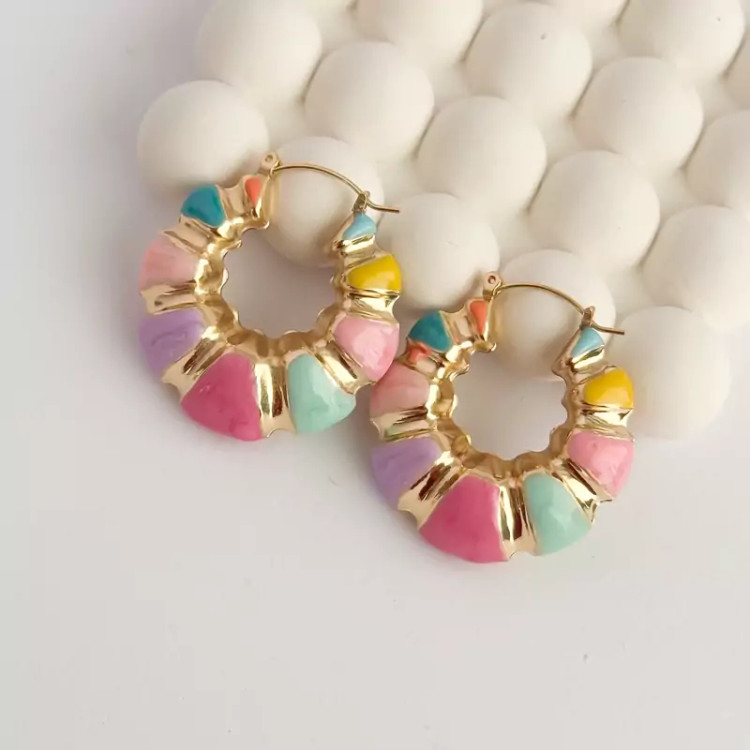گوشواره حلقه ای ابنباتی میناکاری گوشواره رنگی گوشواره میناکاری