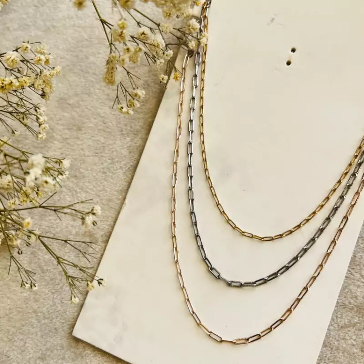 پک سه عددی زنجیر شنل ظریف طلایی نقره ای رزگلد