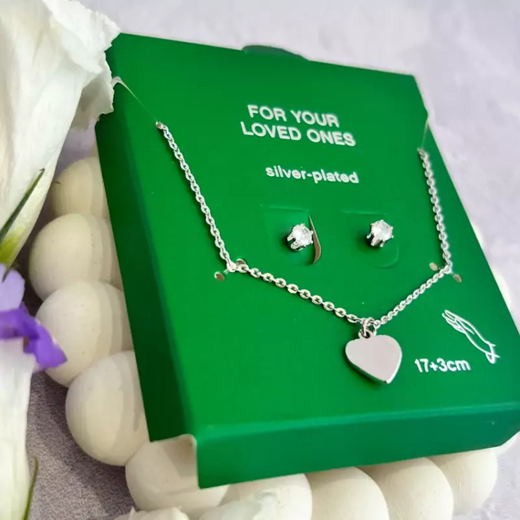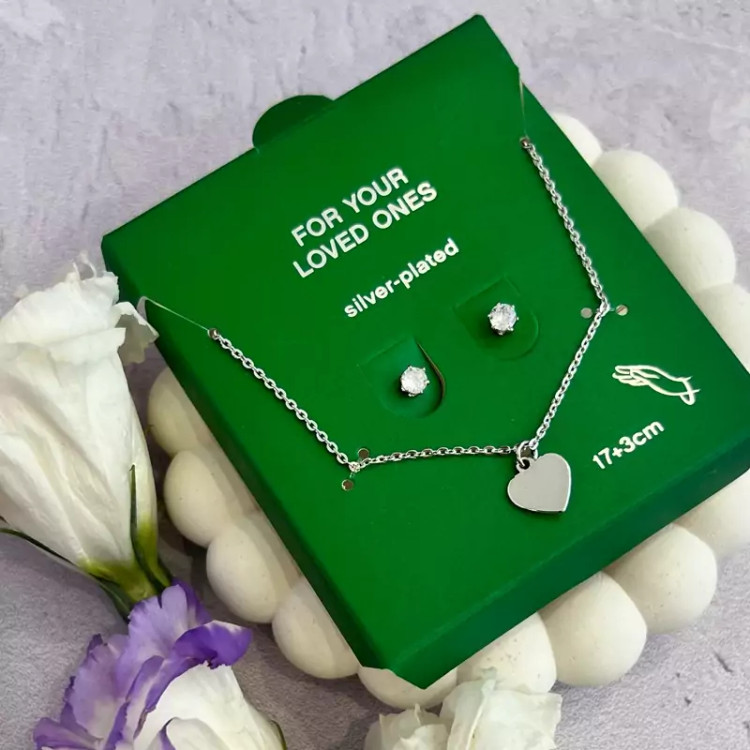 پک دستبند قلبی و گوشواره نگینی روکش نقره