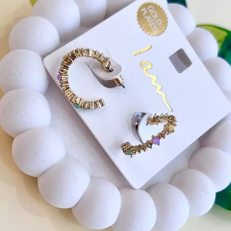 گوشواره نیم حلقه نگین رنگی جذاب و شیک و ظریف روکش طلا