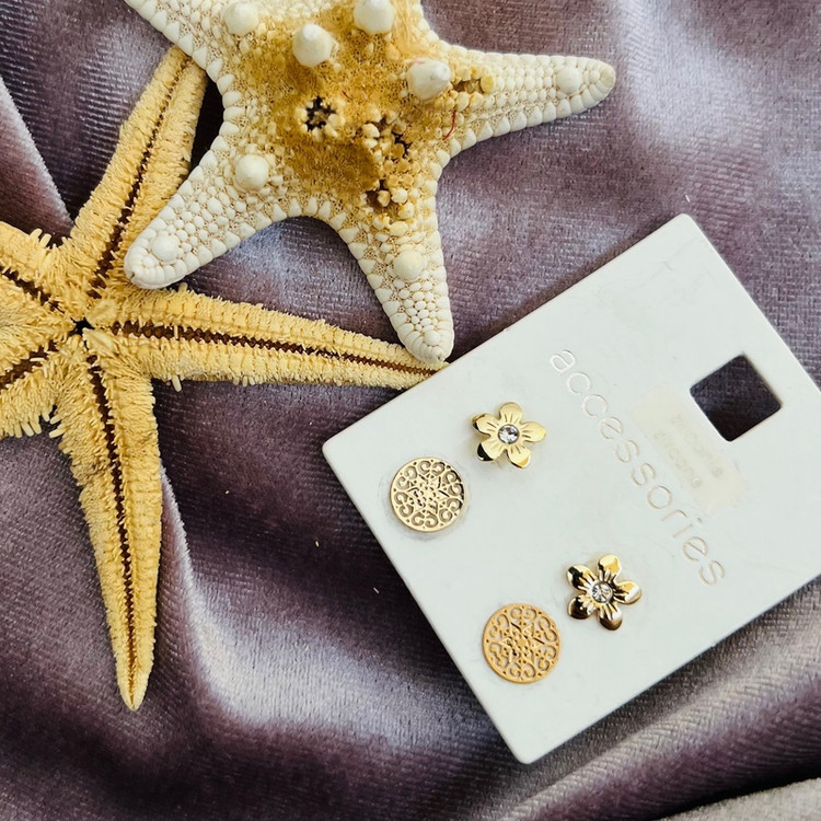 پک دو عددی گوشواره گل و دایره طرحدار وارداتی