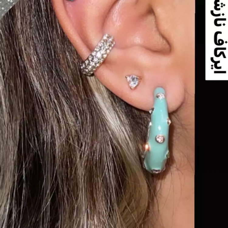 گوشواره سبز ابی نگین دار با کیفیت عالی
