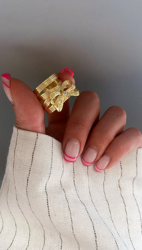 انگشتر پاپیون با رینگ چند لاین کد 8 رنگ طلایی انگشتر پاپیونی طلایی