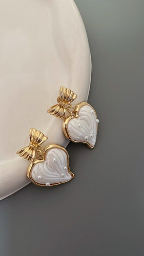 گوشواره قلب صدفی پاپیونی گوشواره پاپیون گوشواره طلایی